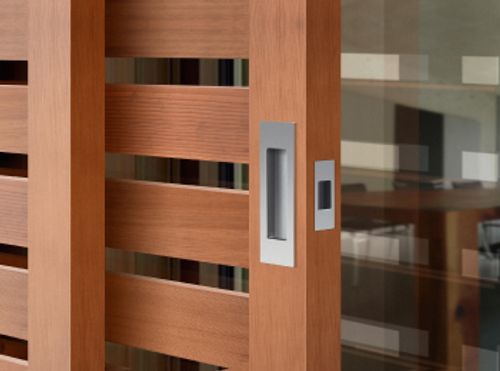 Для открывания раздвижного дверного полотна используется врезная ручка купе, которая по своей форме больше напоминает выемку. Такая деталь предназначена для того, чтобы брать её пальцами для открывания или закрывания двери. В основном выделяют три разновидности таких ручек:
